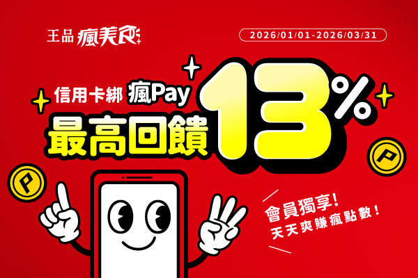 活動期間消費結帳時出示王品瘋美食會員APP,